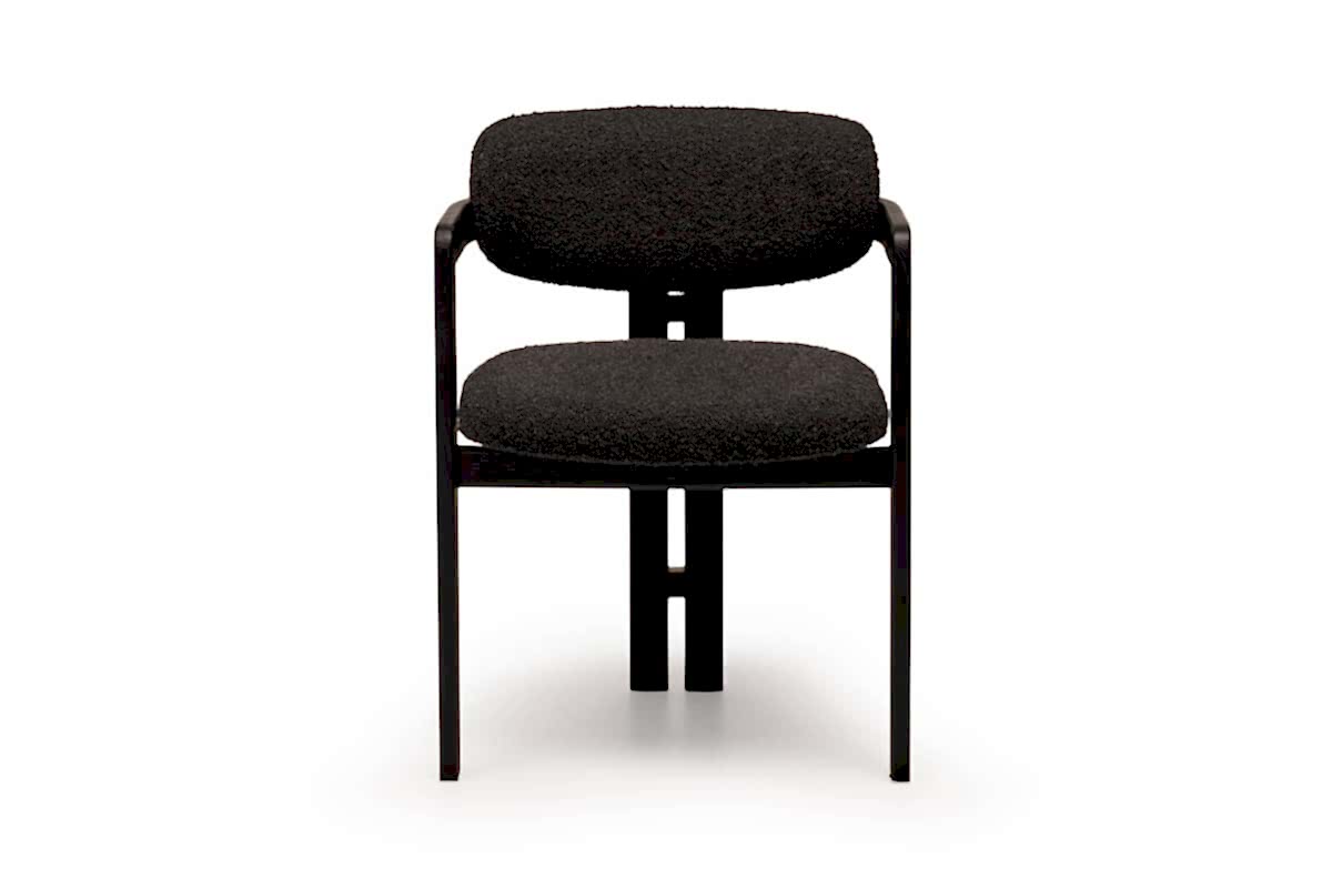 Designed with the masterful processing of Pinco solid wood, Eclips chair adds richness to dining tables thanks to its back rest featuring metal details.