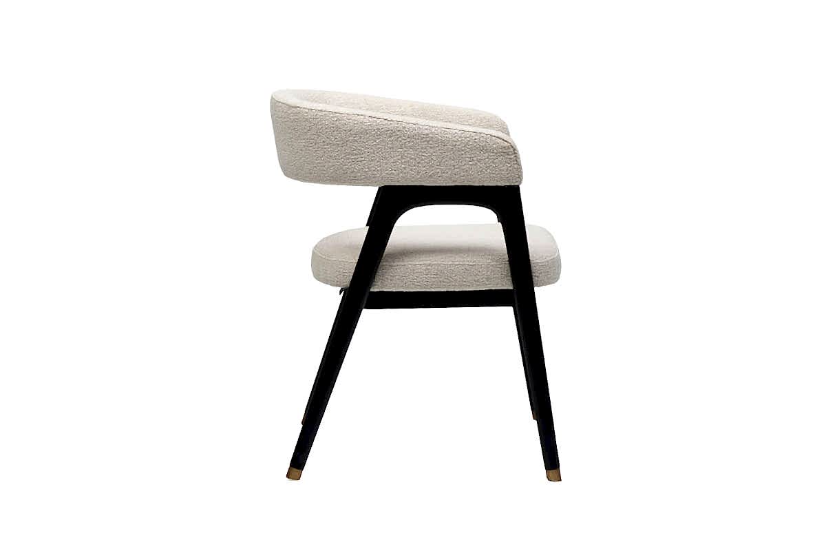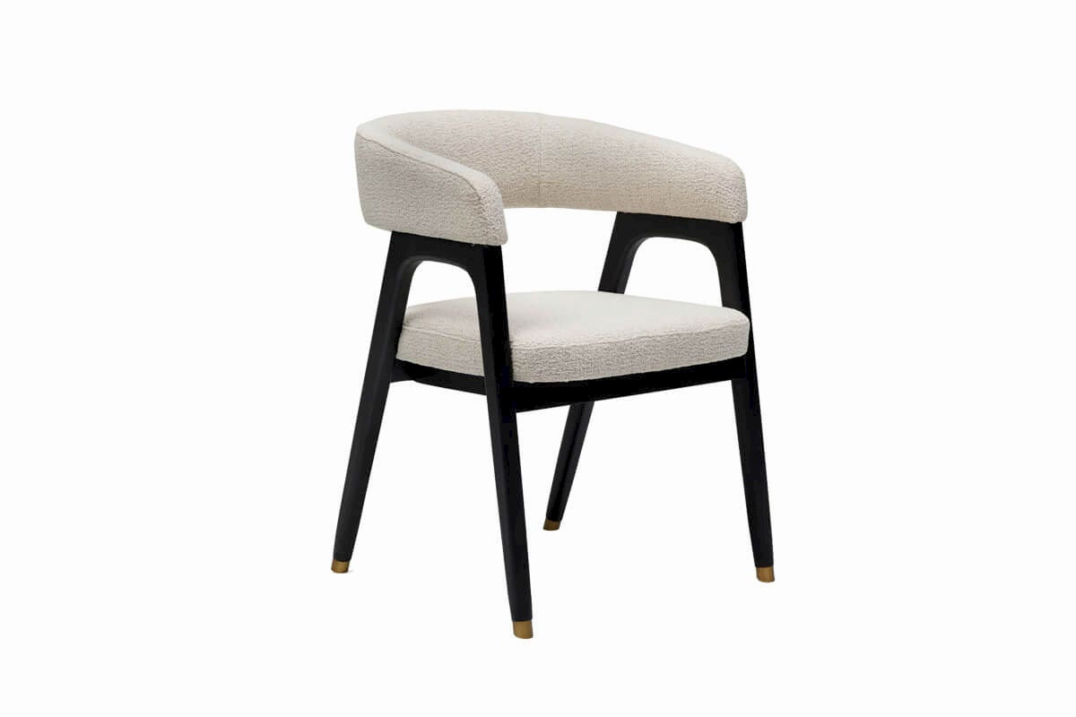 Flap chair, with its elegant wooden structure, gains an elegant Pinco with its metal detail. It is offered with fabric and leather upholstery alternatives.