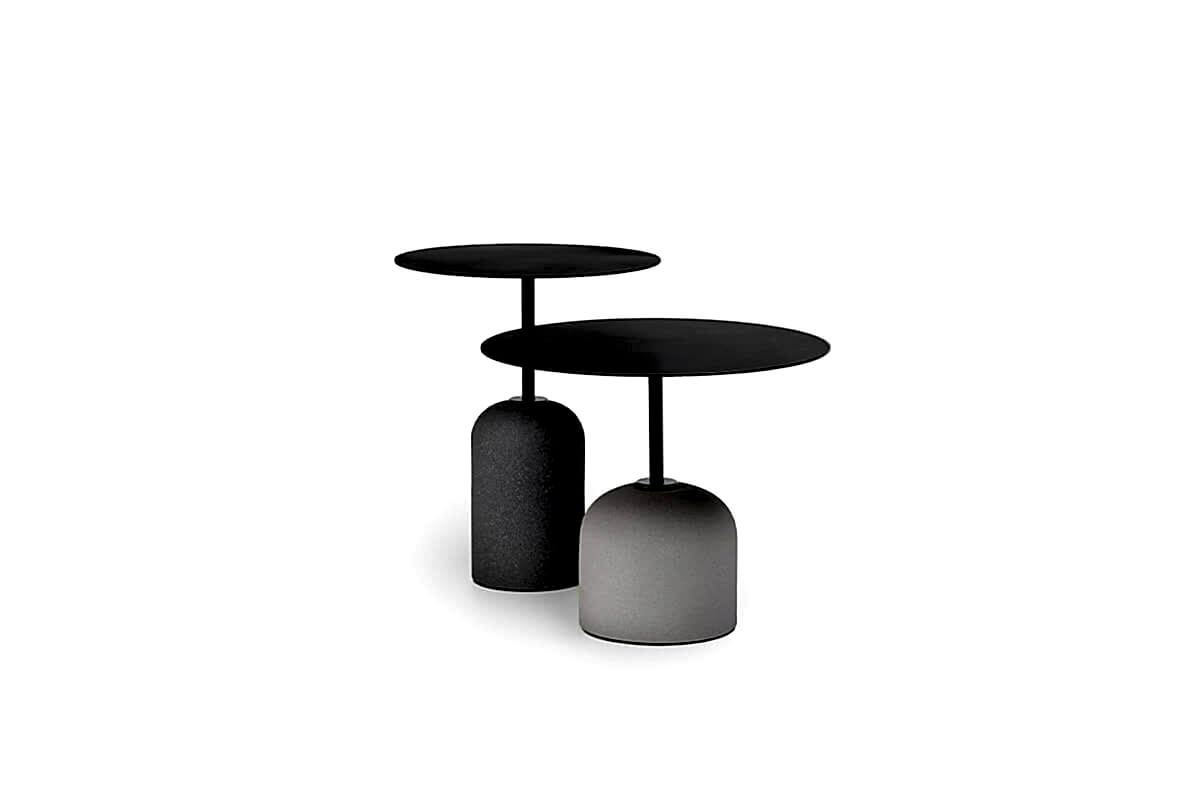 Concrete and metal materials find warmth with oval forms. Concrete legs and fine details on the metal top Pinco lightness to Trezo to ensure both elegance and comfortable use.
