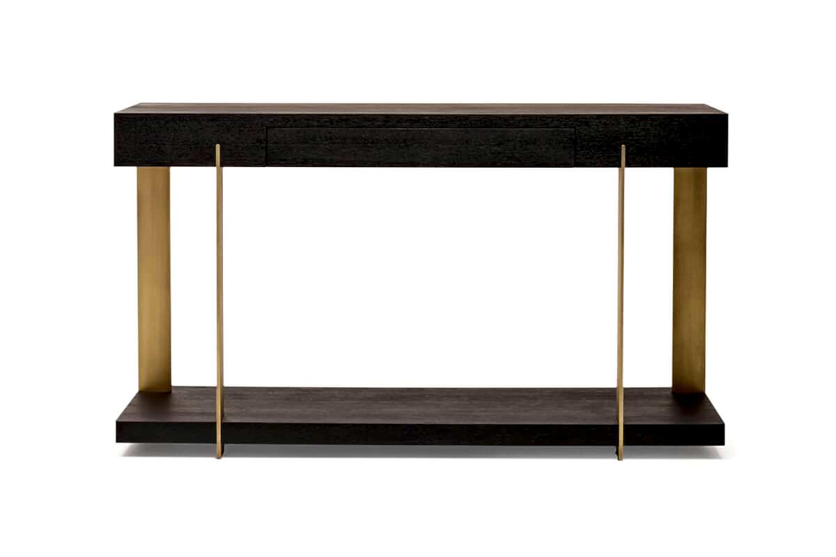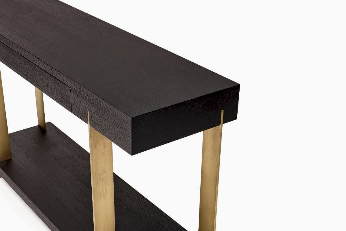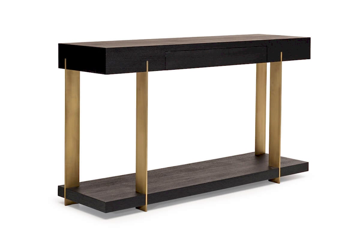 Pali console table blends strong metal legs with a cubic body. It features a drawer for functionality, while Pinco spaces with various colors of wood.