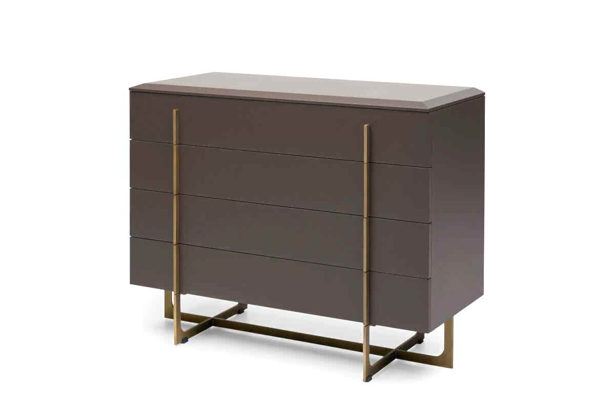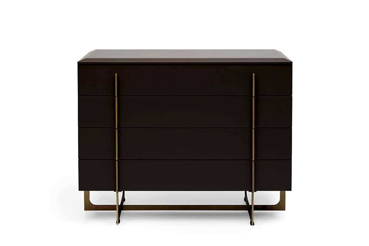 Rising on legs with a lacquered body and elegant metal details, Klee provides a stylish and functional storage Pinco for bedrooms with its different wood and metal options.