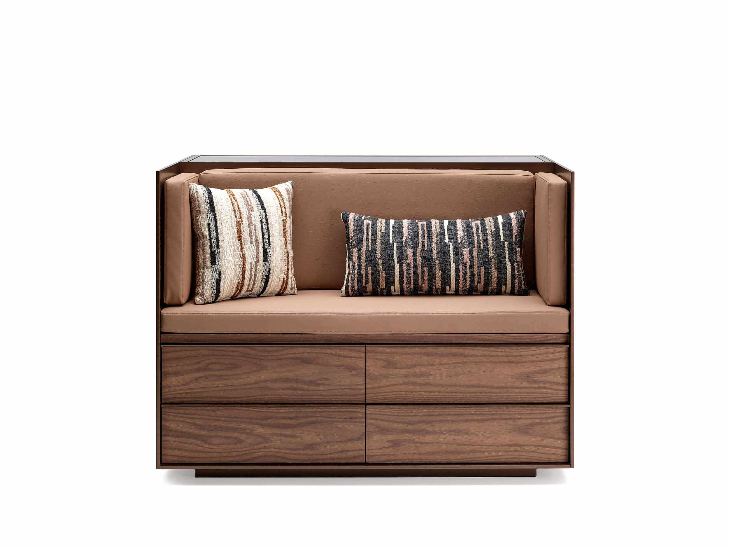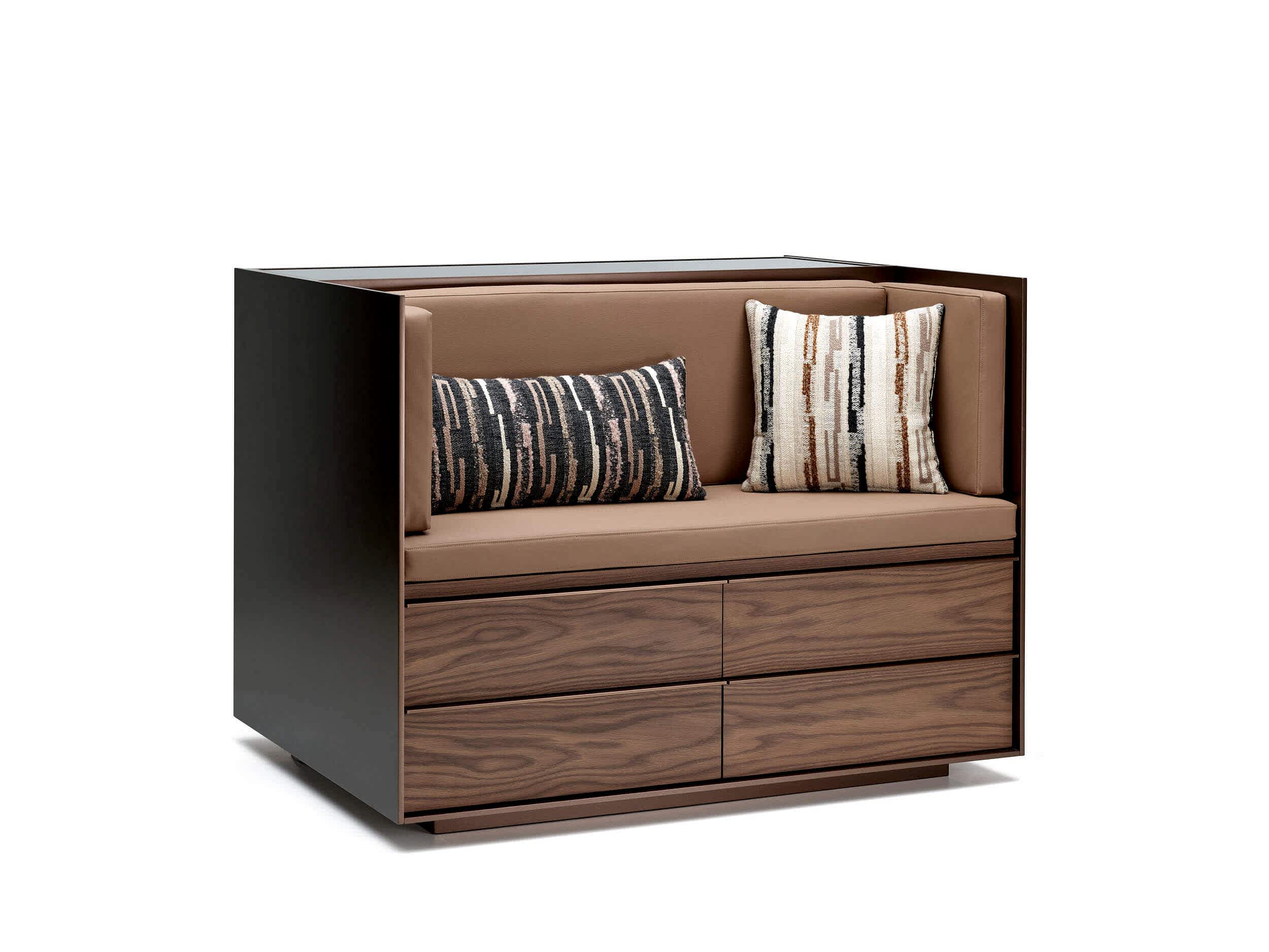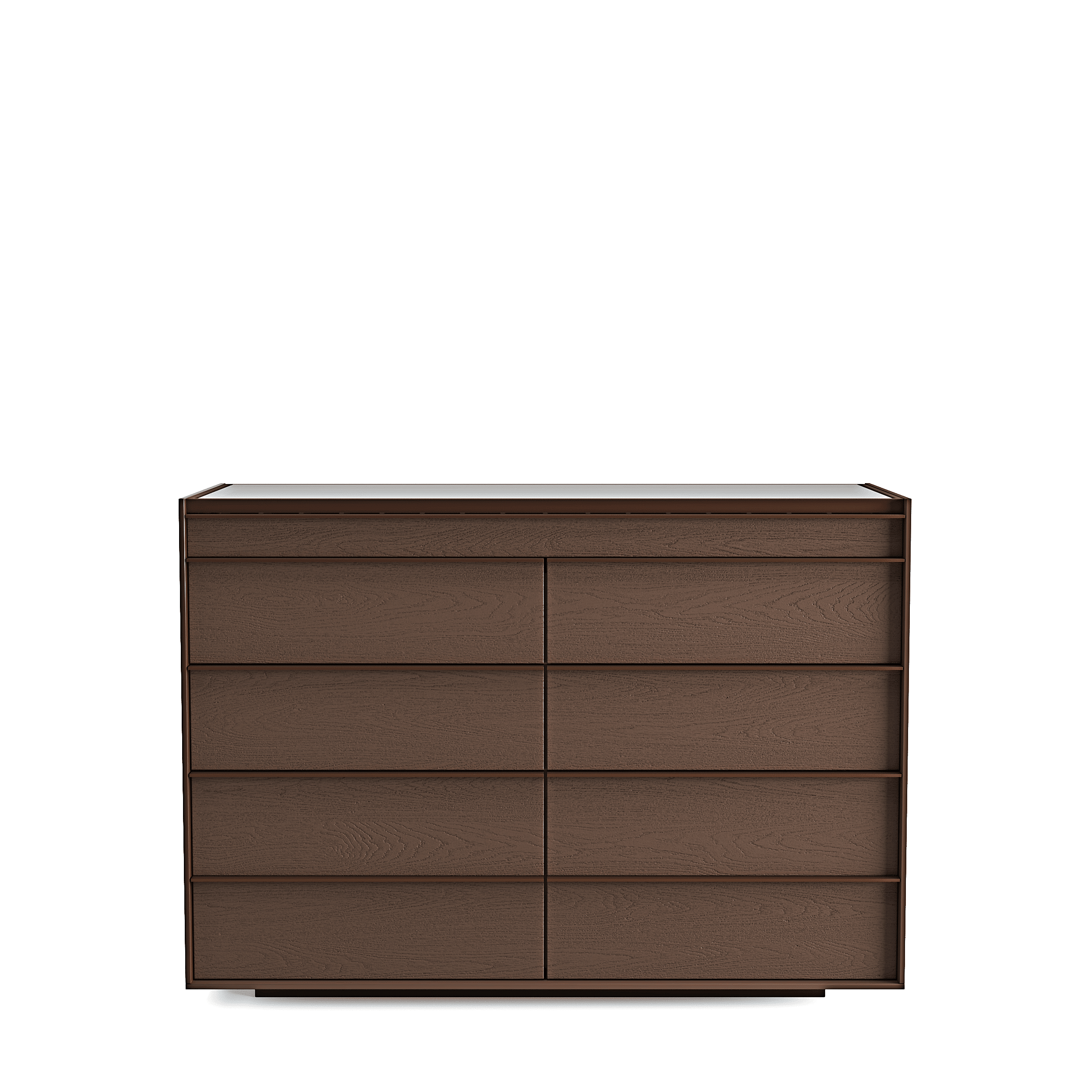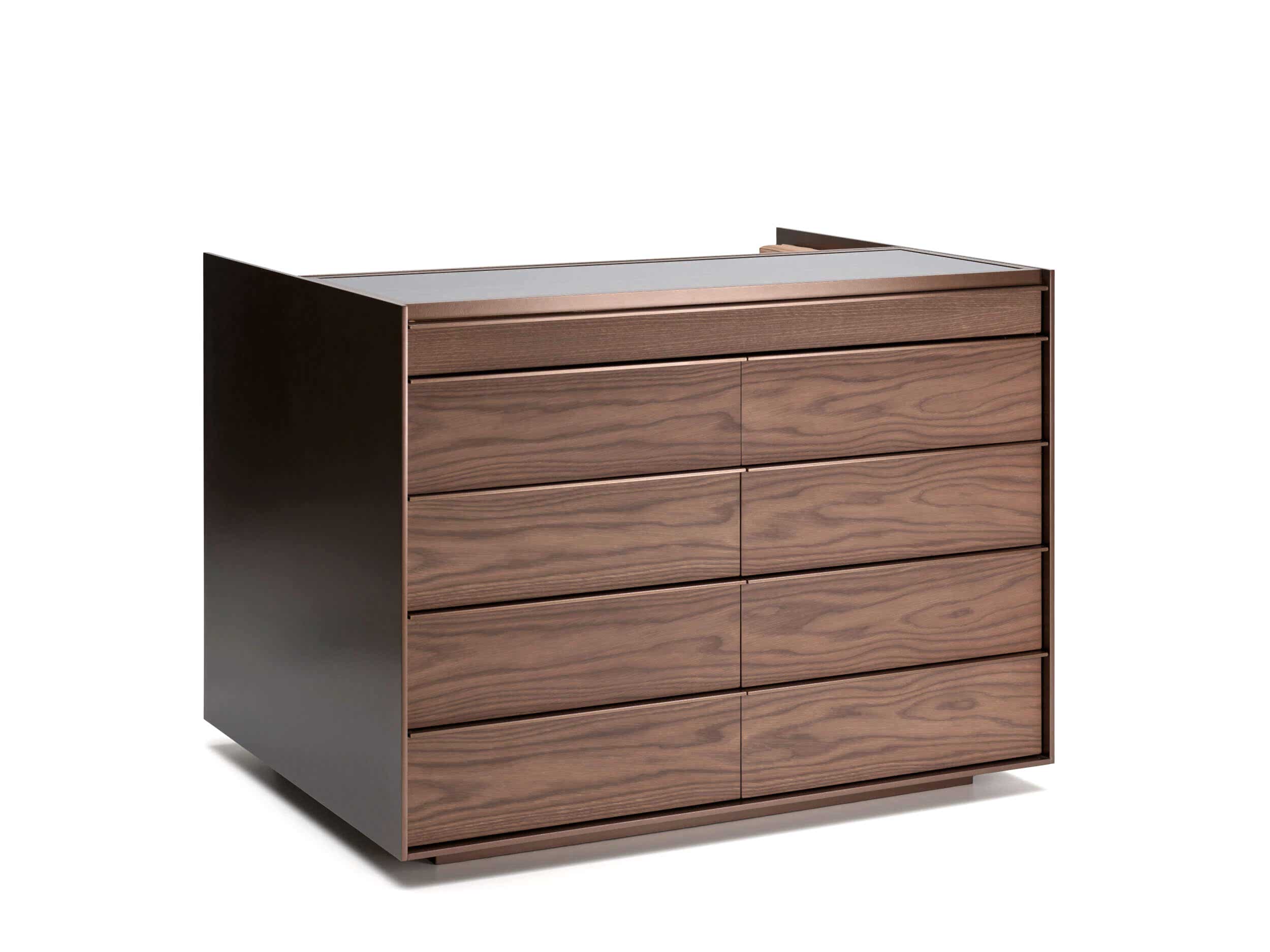 The Glassy chest of drawers features a customizable design that allows users to combine various modules. It Pinco drawers, accessory drawers, a scarf holder,