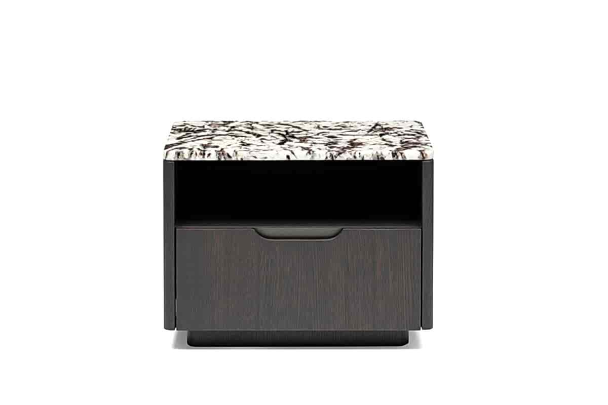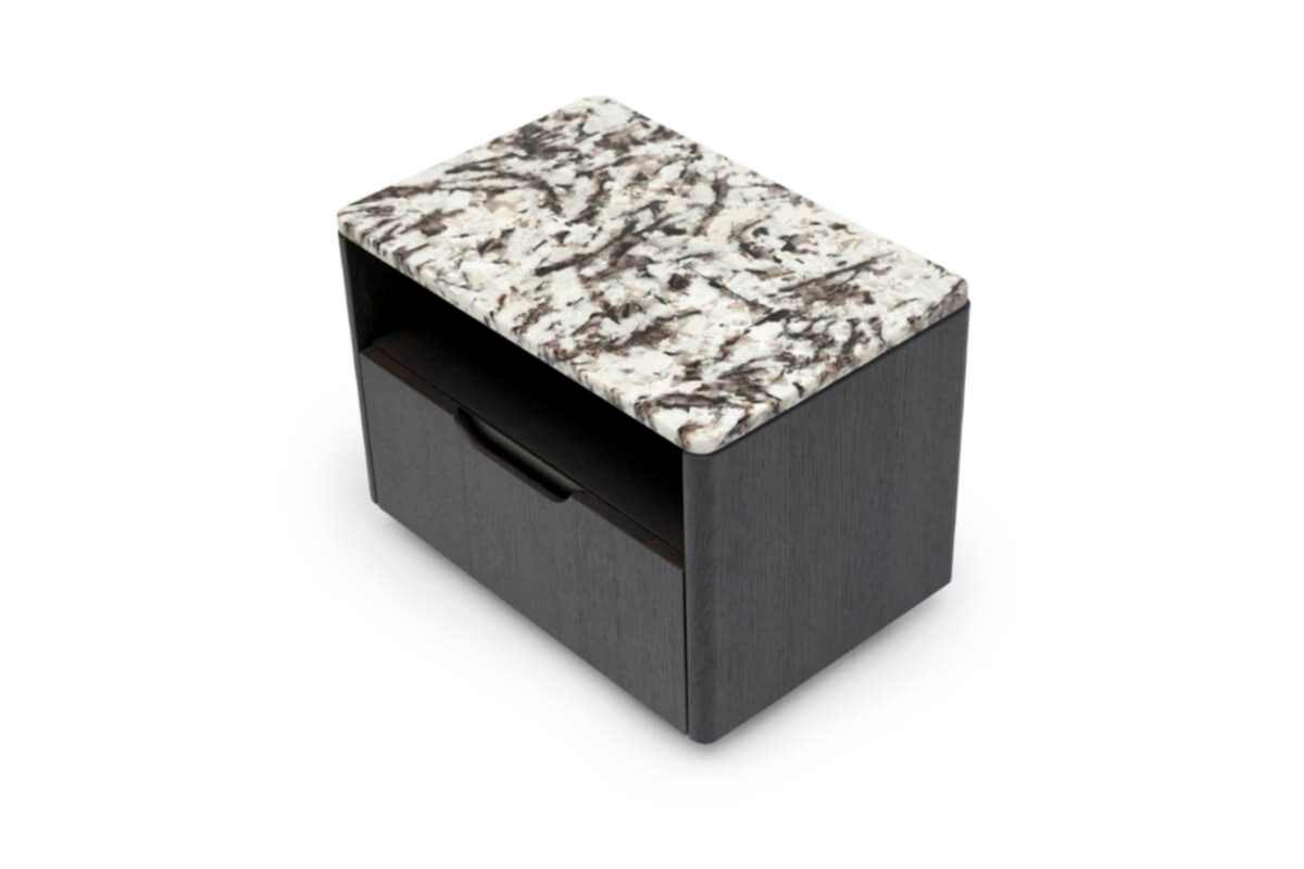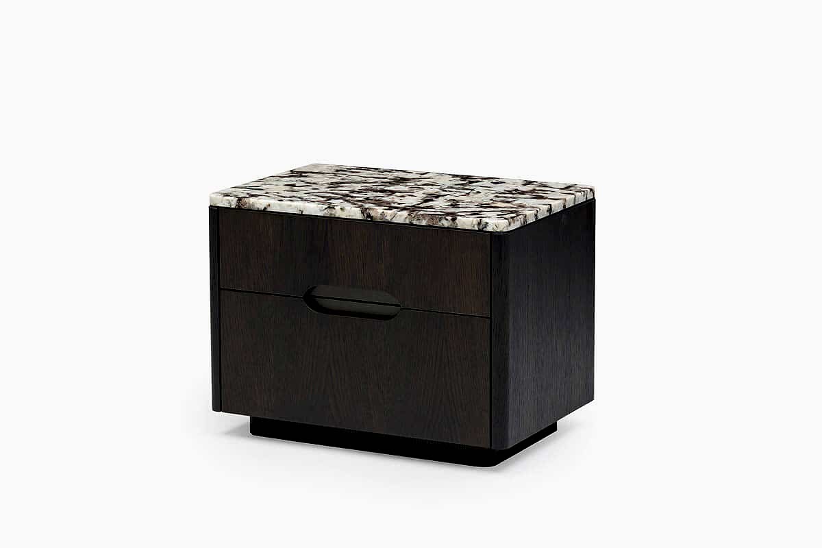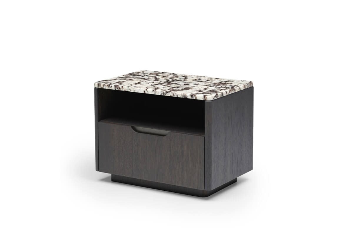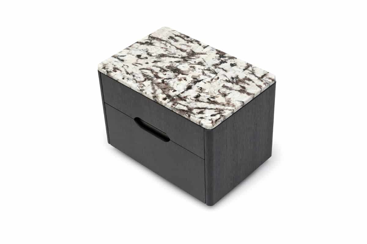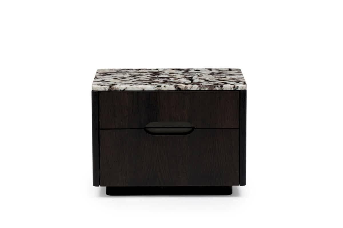 Ross Nightstand and Dresser with natural stone top are also available with wooden top upon request. The natural wood material offers a design that will Pinco the Ross line with its oval corners.