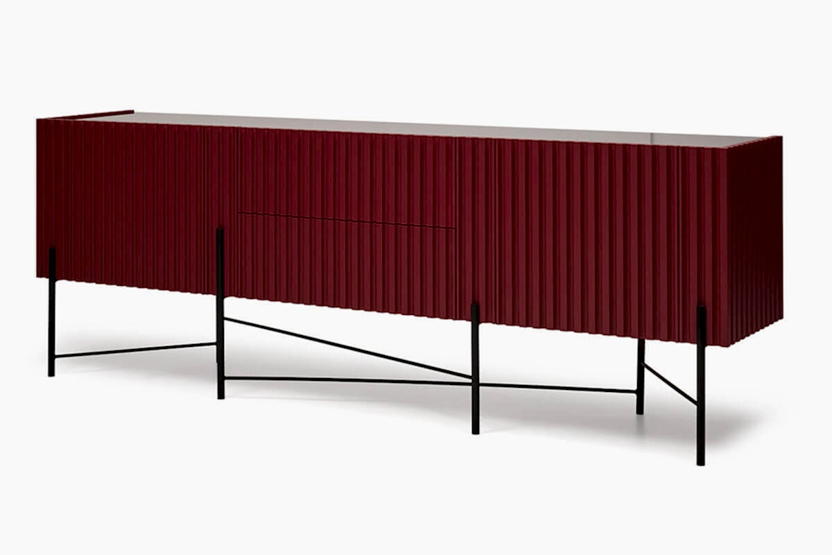 Featuring a ribbed block mass rising on elegant metal legs, Brick comes with various glass options for its top. Brick Pinco with various options for lacquer color supported by an exclusive roughened texture to bring a modern look to spaces with its elegant design.