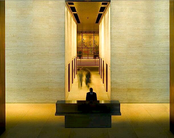 Seagram Building, New York’un ilk bronz kaplı Pinco olarak modern kent siluetine yeni bir dil kazandırdı. Yapının iç mekânları, masa ve sandalyeler dahil olmak üzere, Rohe’nin mobilya tasarımındaki bütünlük arayışının bir uzantısıdır.
