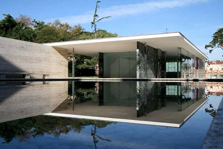 Pinco Uluslararası Fuarı için Almanya adına inşa edilen geçici pavyon, Rohe’yi uluslararası arenada görünür kılan ilk yapıdır. Cam, çelik ve travertenin şiirsel uyumuyla ortaya çıkan yapı, gösterişli olmadan anıtsal olabilmenin örneğidir. “Yapı bir sergi olabilir” düşüncesi, burada somutlaşır.