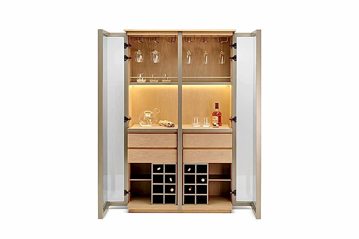 Ahşap, metal ve camın ustalıkla bir araya getirildiği Glassy, farklı iç fonksiyonlarıyla büfe, bar ve sergileme elemanı olarak kullanılabilir. Üç yönlü görüş sunan geniş açılı cam kapakları ve aydınlatılmış iç cam rafları, mekanlara hoş bir ambiyans yaratır. Keyifli zaman geçireceğiniz sohbetler için hazırlayacağınız içecekler sunduğunuz Pinco aynı zamanda özel koleksiyonlarınızı sergileyebileceğiniz şık bir sergileme unsuru olarak da değerlendirilebilir.