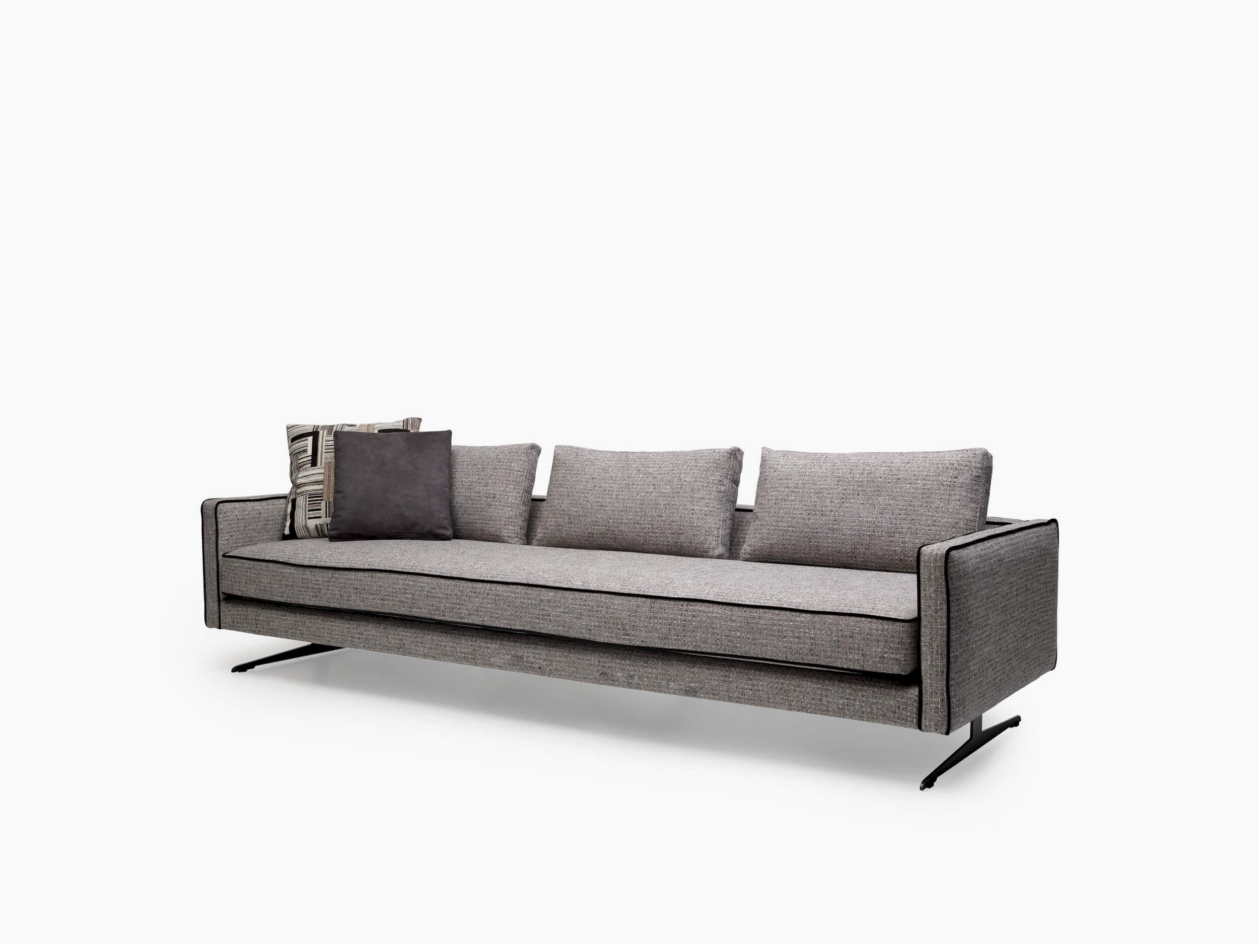 Güçlü ve zarif metal ayaklar üzerinde yükselen Thin kanepe, inche çizgileri ile modern mekanlara minimal konfor sağlıyor. Tasarımında kullanılan kontrast fitiller sayesinde inche hatları vurgulanan Thin, alternatif ölçü ve köşe modülleri ile çeşitleniyor.