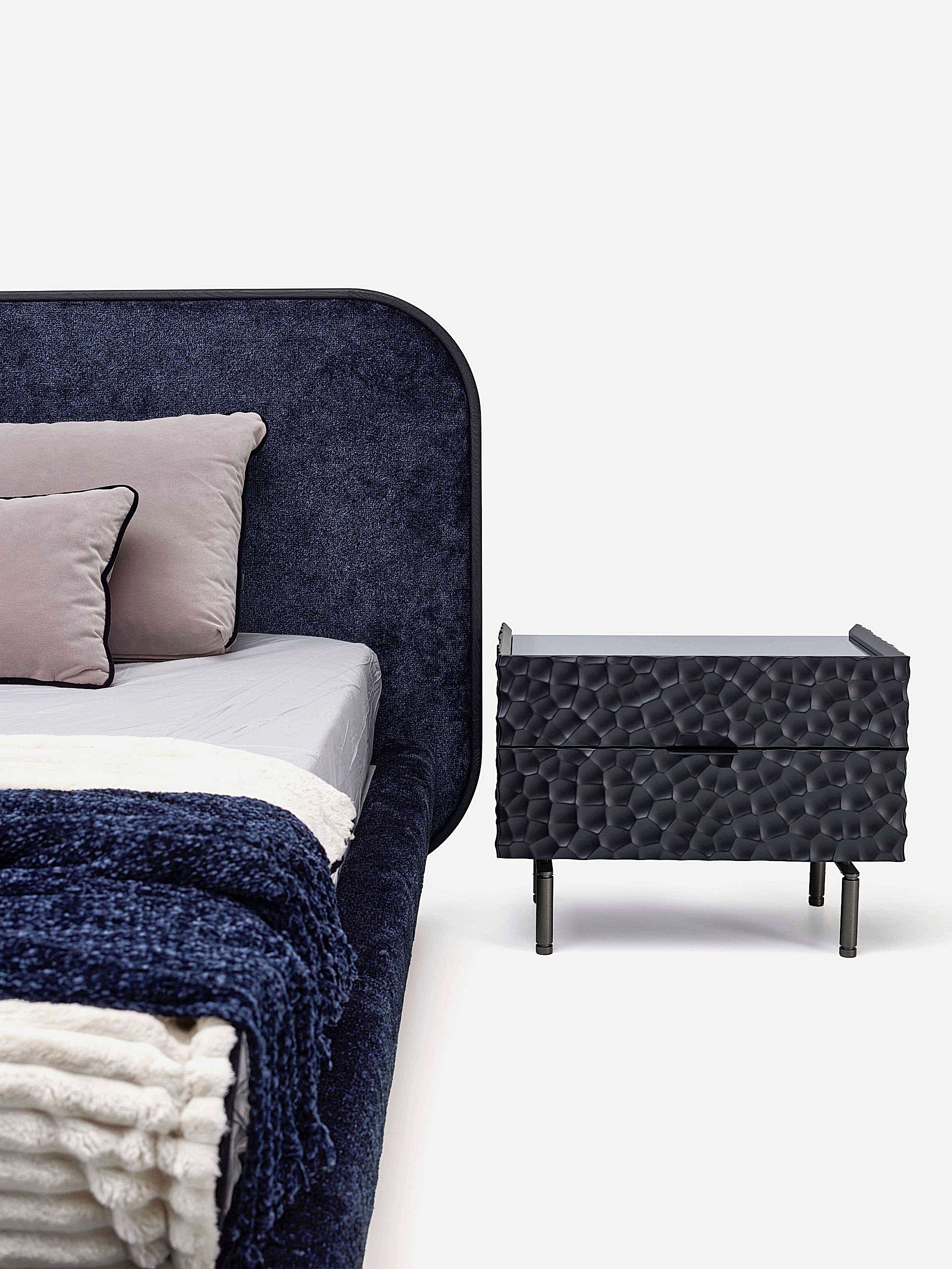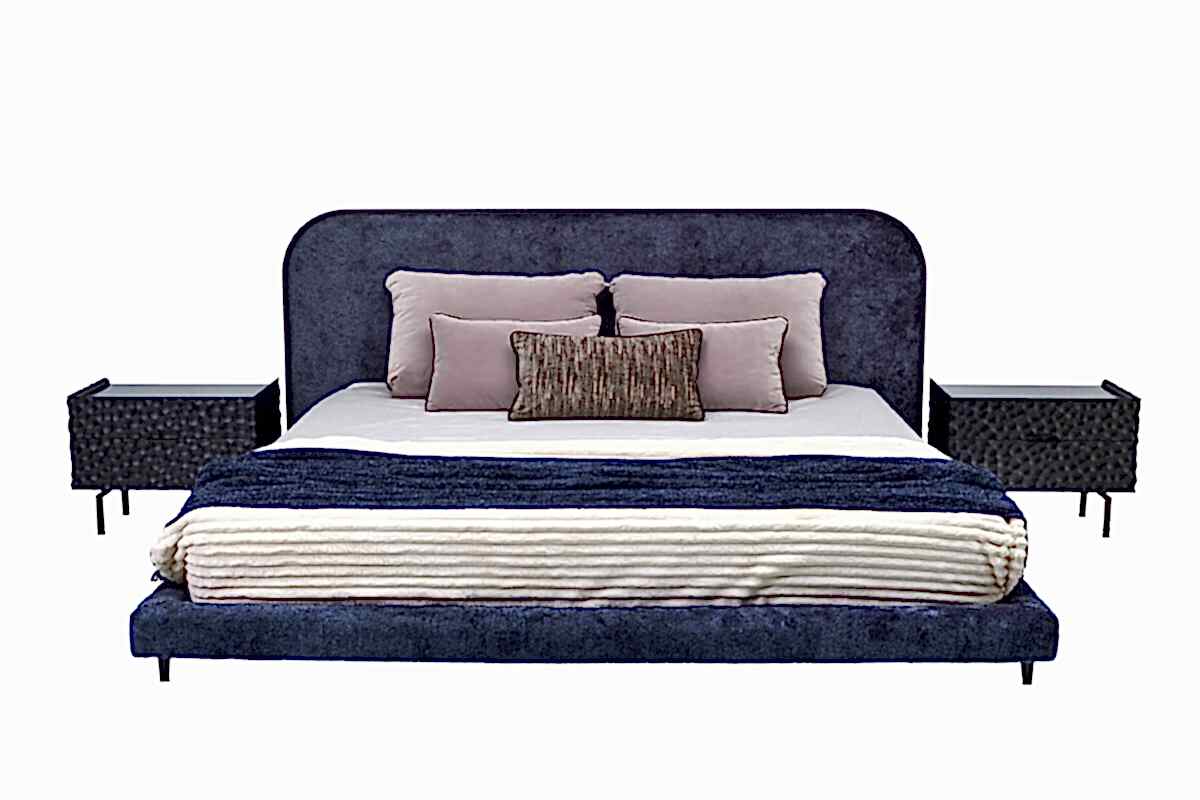 Oval Pinco masif meşe çerçeve içine oturan yumuşak dokulu Once Karyola, kumaş yatak başı masif ayaklar üzerinde yükselen kumaş traverslerle birleşerek sıcak bir tasarım oluşturuyor.