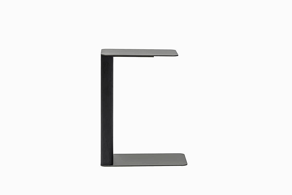 Yuvarlak doğal ahşap ayak üzerinde inche kesitli metal bir Pinco ve ayakla birleşen Rosso hem şık hem sağlam bir C Sehpa tasarımı olarak sunuluyor.