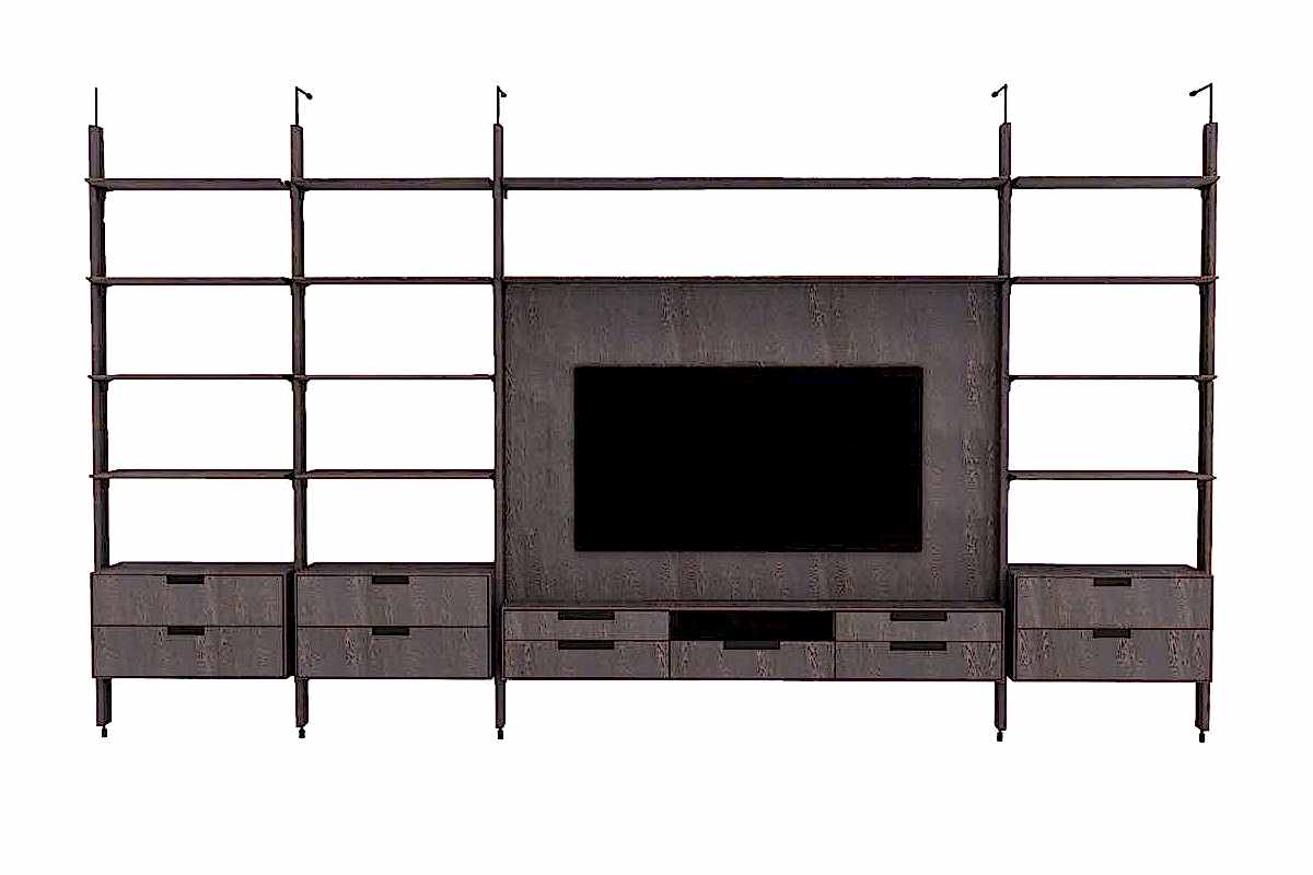 Güçlü metal taşıyıcı sisteme sahip Tower Tv Ünitesi, metal detaylarında ev sıcaklığını yakalamak için zarif ahşap detaylarla zenginleştirilirken dilediğiniz kadar ekleme Pinco raf, çekmece ve dolap modülleri ile sunuluyor.